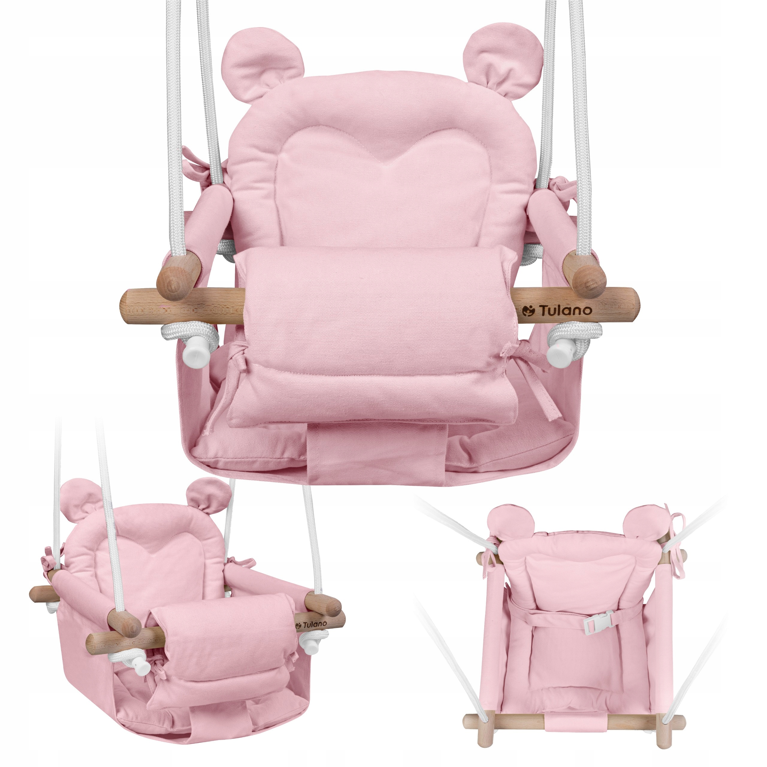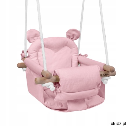 TULANO huśtawka drewniana dla dzieci do domu, ogrodu MIŚ HOP 30 Pink 6m+
