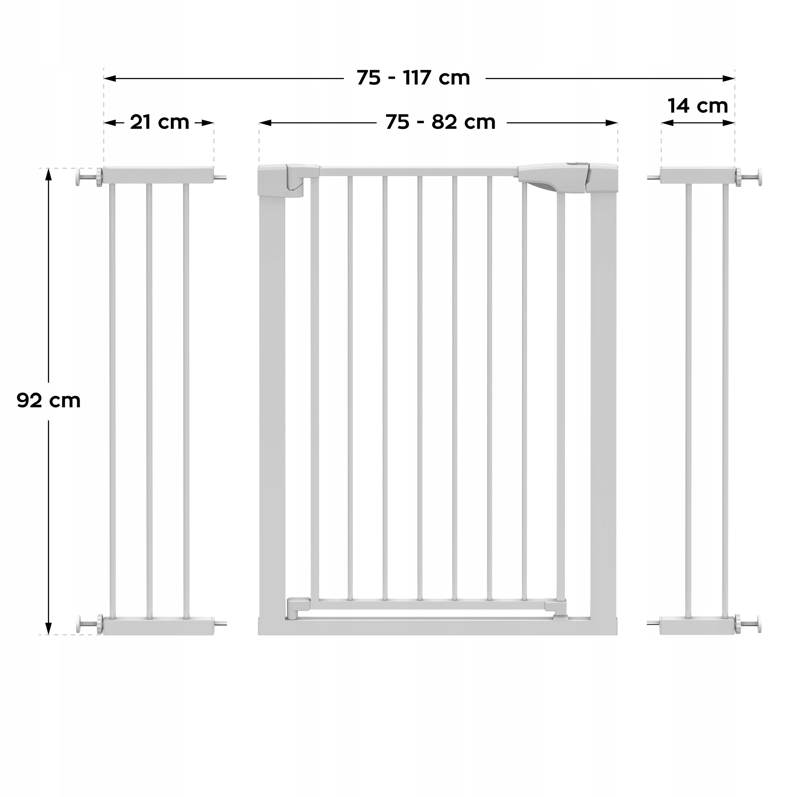 - Szerokość bramki 82 cm i 2 boczne przedłużki: 14cm oraz 21cm w zestawie