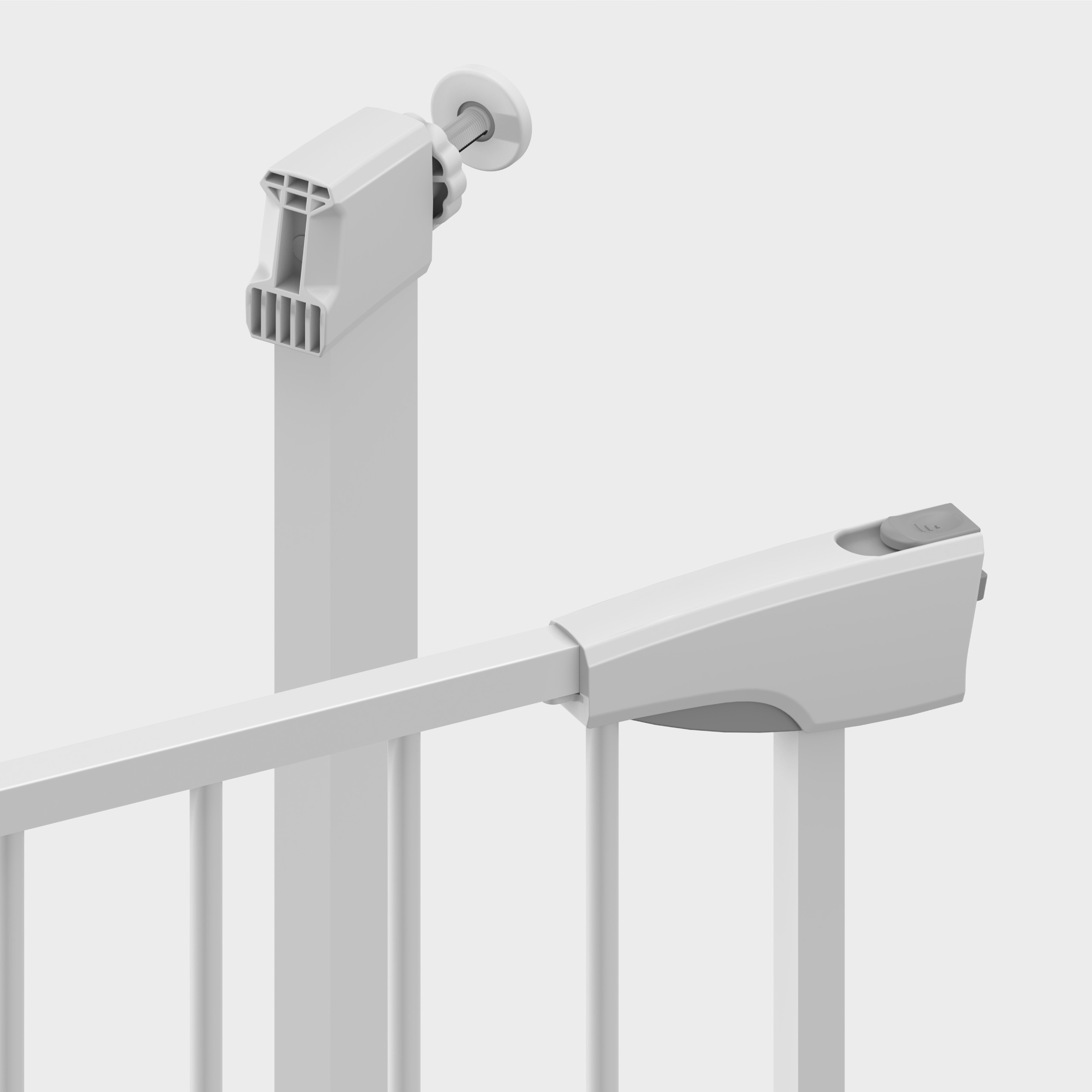 Barierka montowana jest rozporowo, a więc bez potrzeby wiercenia otworów w ścianie. Montaż jest niezwykle prosty i zajmuje dosłownie chwilę. Bramka nie zostawia śladów na ościeżnicy i ścianie.