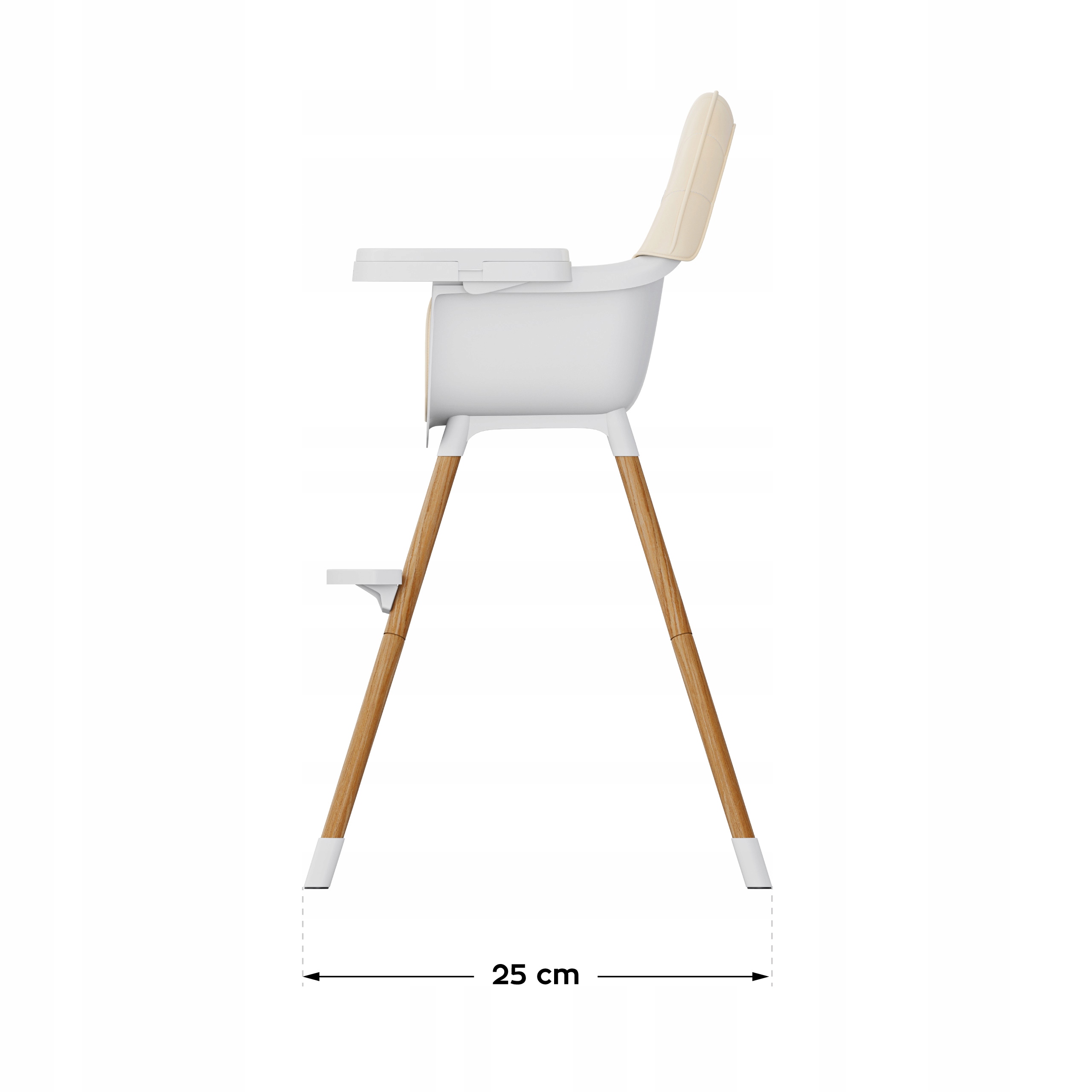 - Krzesło jest idealne dla dzieci od momentu siadania aż do 25 kg, dzięki możliwości skrócenia nóg