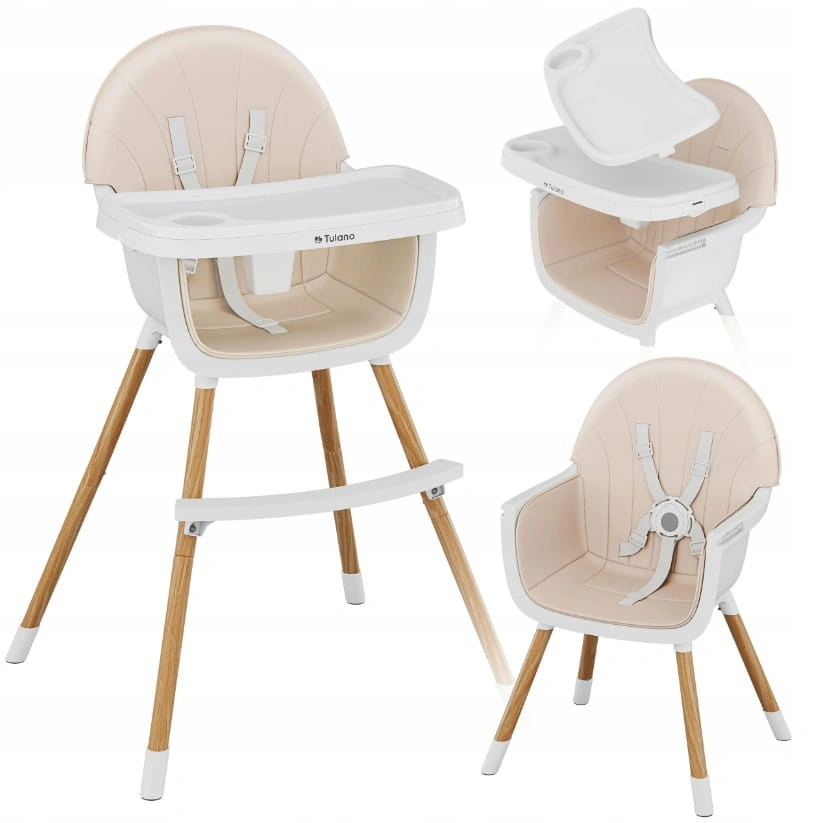 TULANO Krzesełko do karmienia dla dzieci 2w1 regulowane MORSEL Beige