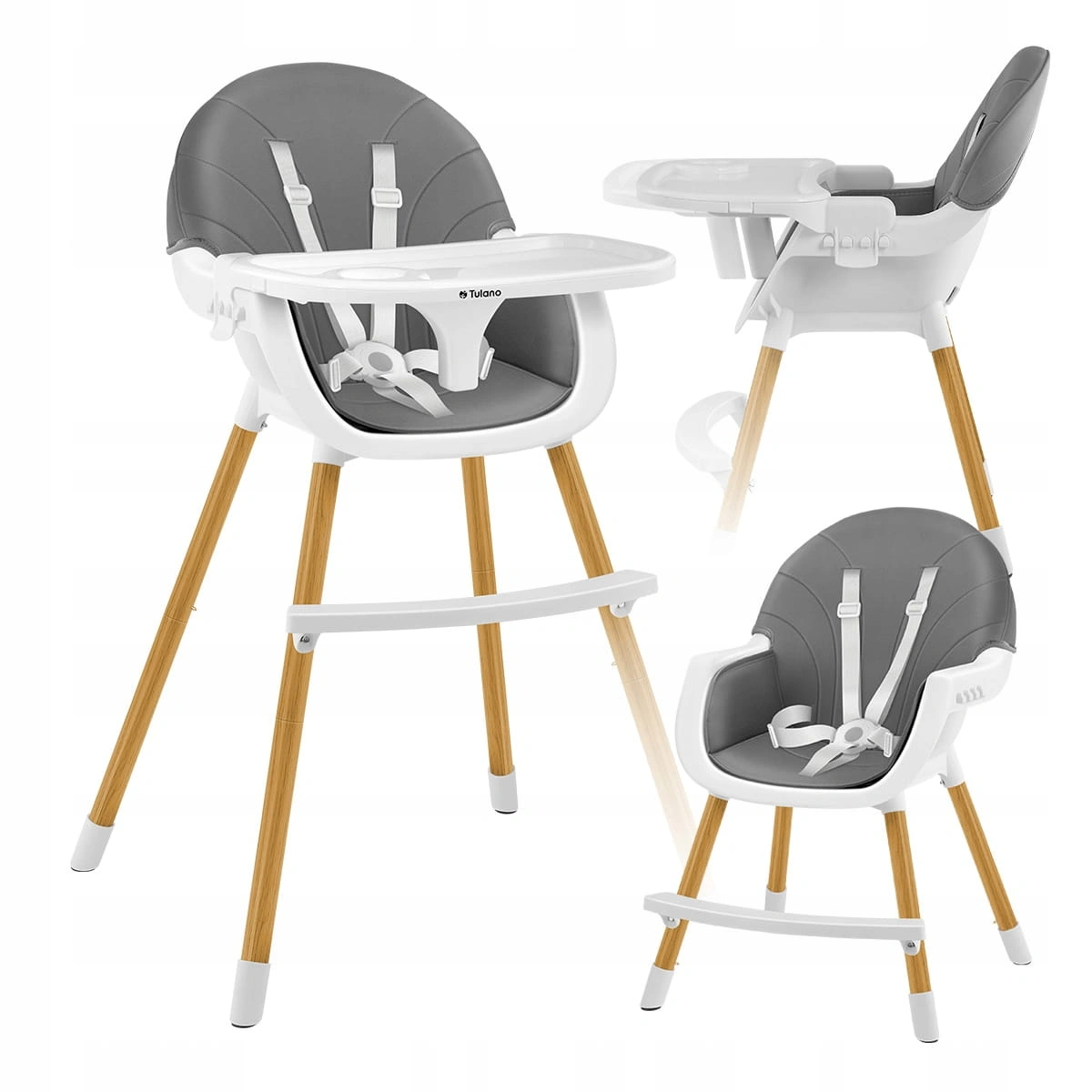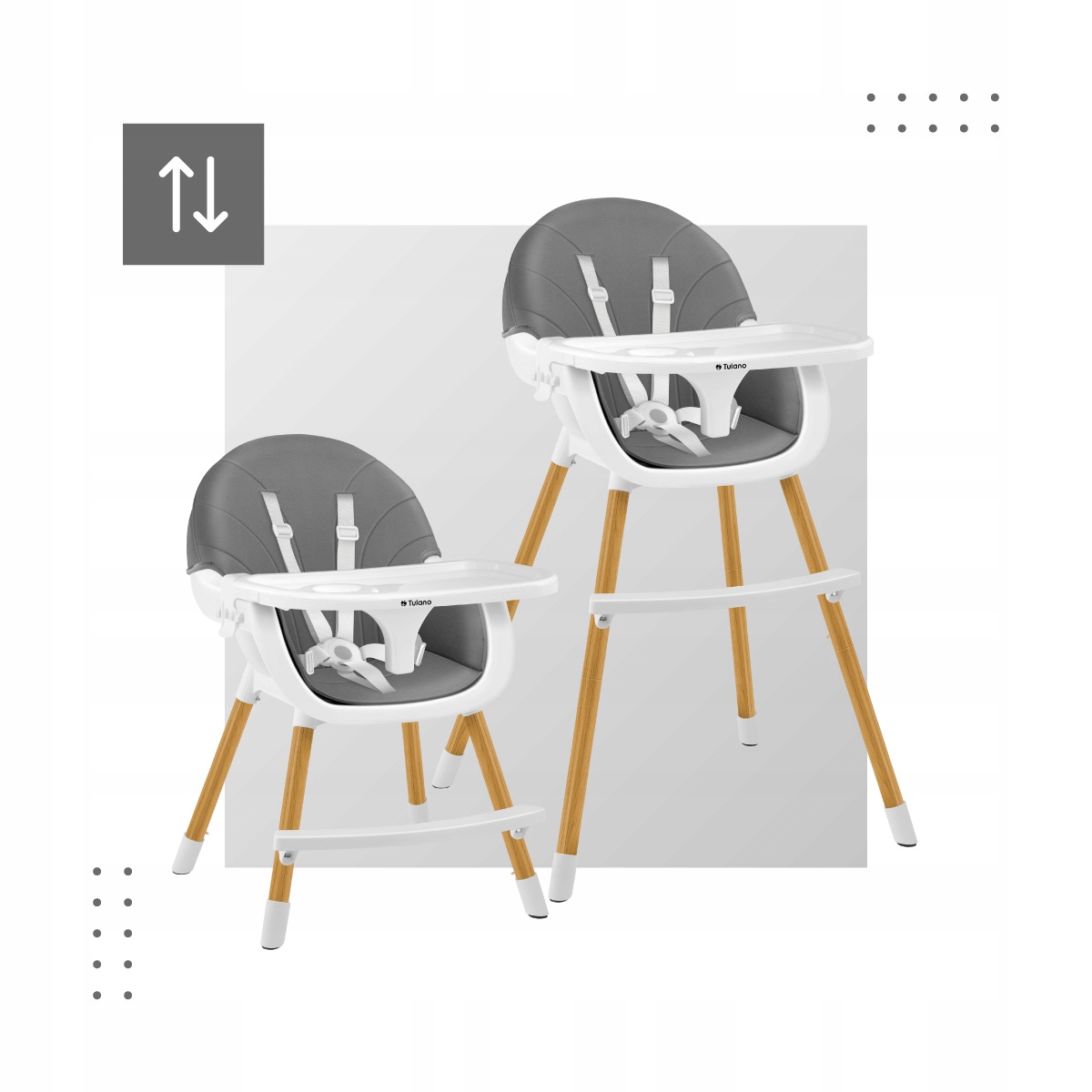 TULANO Krzesełko do karmienia dla dzieci 2w1 regulowane MORSEL Grey
