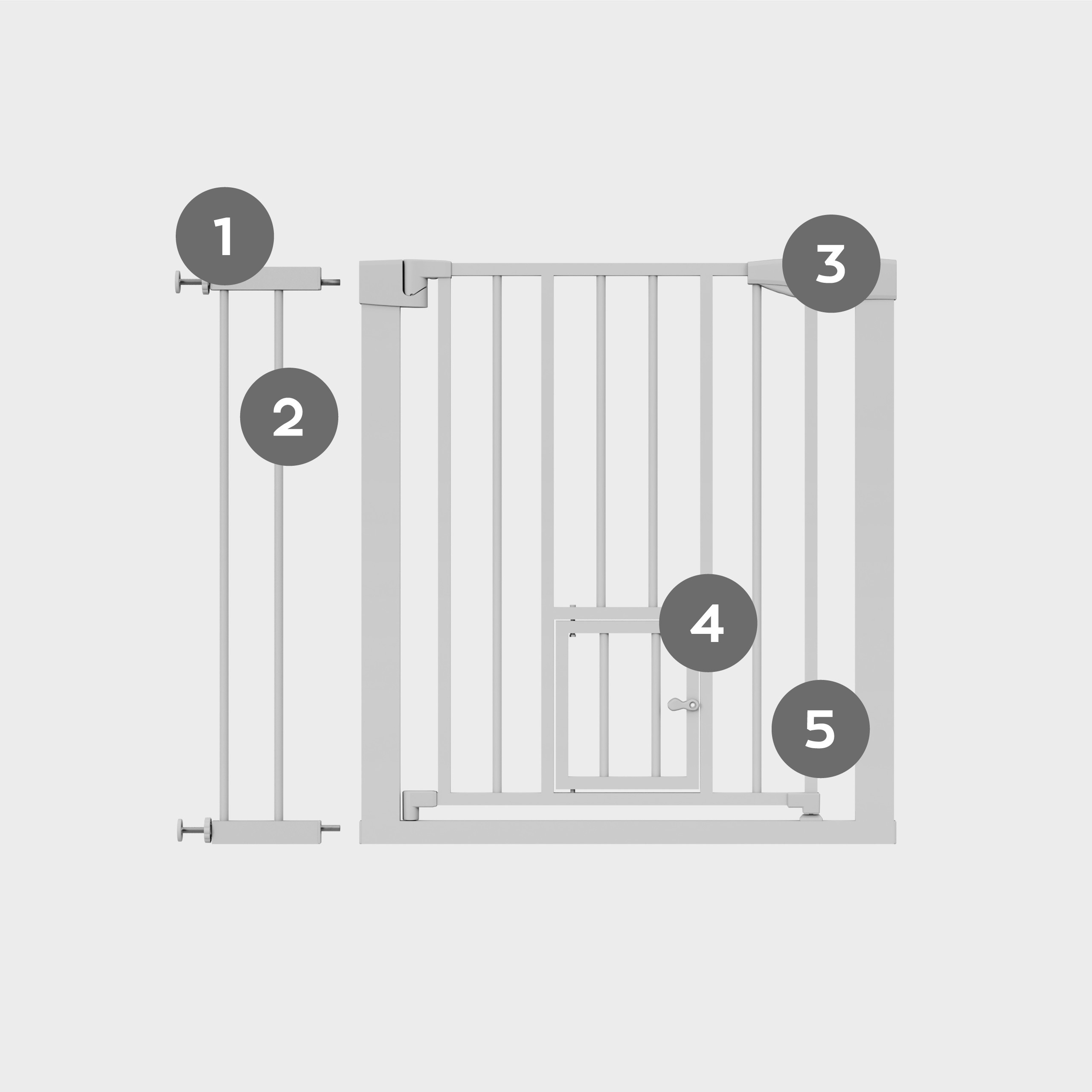 - Dzięki systemowi przedłużek barierka może być stosowana w otworach o szerokości od 75 do aż 96 cm.