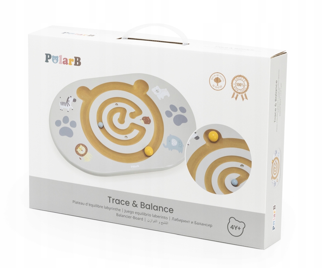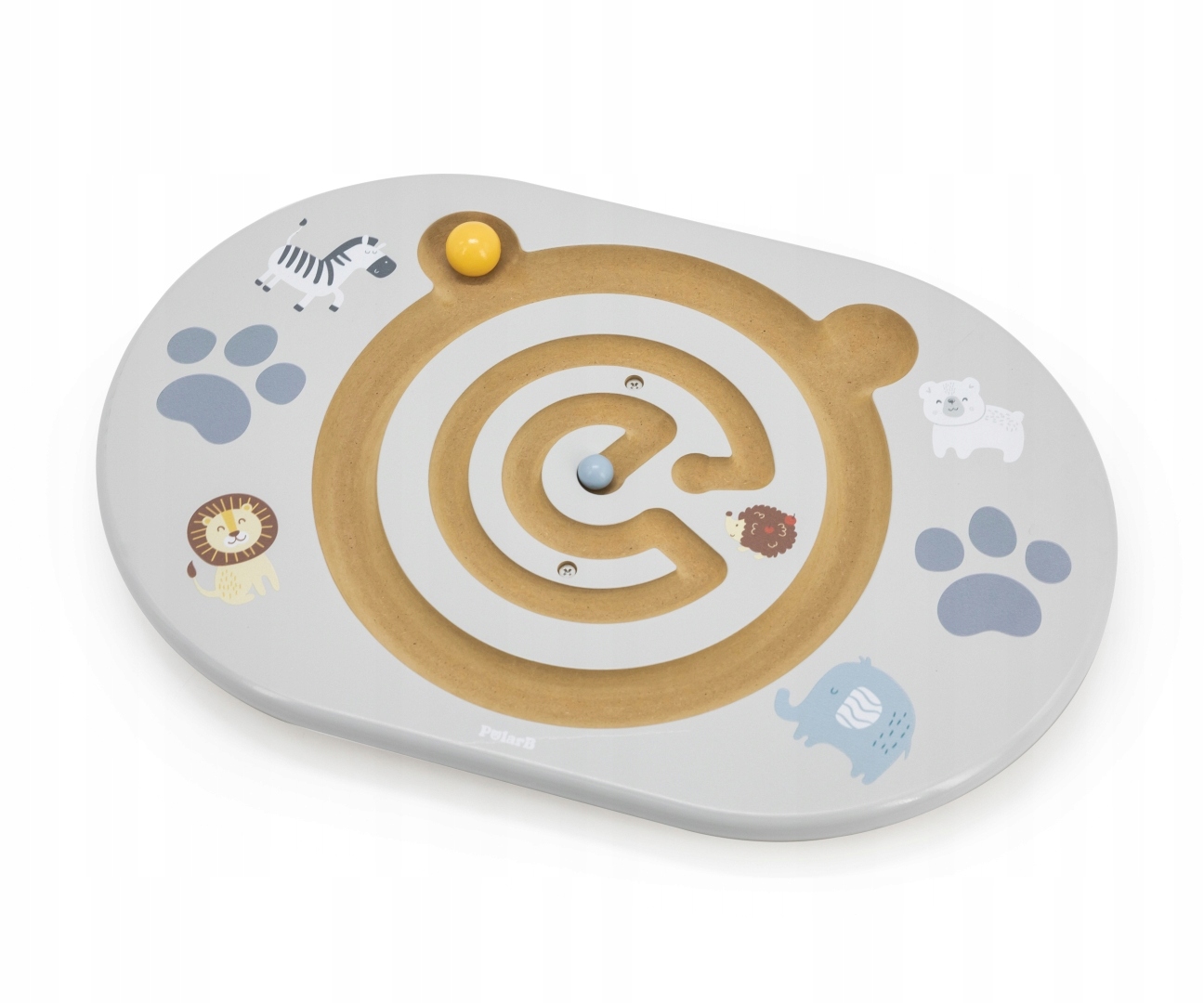 Viga 44273 PolarB Balansujący labirynt to zabawka idealna dla dzieci powyżej 4 roku życia, która wspiera rozwój równowagi, koordynacji ruchowej oraz koncentracji. Zestaw składa się z deski balansującej ze żłobieniami w kształcie misia oraz dwóch drewnianych kulek. Zadaniem dziecka jest przesuwanie kulki wzdłuż labiryntu, balansując na desce, co stanowi świetne ćwiczenie równowagi i kontroli ciała.Całość wykonana została z drewna bukowego pomalowanego nietoksycznymi farbami o stonowanych barwach, które przyciągną wzrok oraz zachęcą do zabawy dając jednocześnie mnóstwo radości z zabawy.Naszym priorytetem jest bezpieczeństwo dzieci oraz najwyższa jakość zabawek, dbamy zatem o to, aby farby którymi malujemy nasze zabawki nie były toksyczne i spełniały normy bezpieczeństwa (EN71 i ASTM).Deska jest solidna i bezpieczna, dzięki czemu dzieci mogą z niej korzystać w pełnym komforcie i bez obaw.Zabawka przeznaczona dla dzieci powyżej 4 lat.Zestaw zawiera: