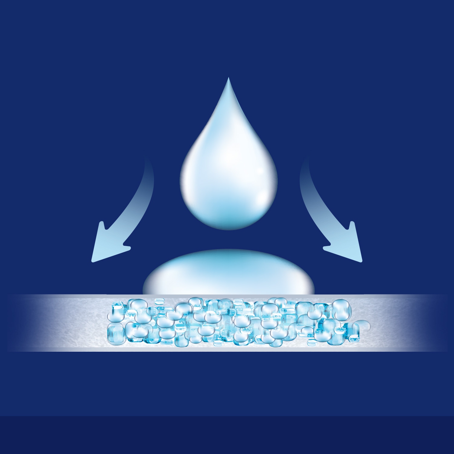 - wkład żelujący zatrzymuje wilgoć wewnątrz wkładki nawet do 100 ml, zapewniając uczucie suchości i komfortu.