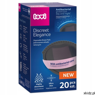 Wkładki laktacyjne LOVI Discreet Elegance zapewniają ochronę antybakteryjną dla mamy i dla jej dziecka. Specjalny wkład antybakteryjny, z dodatkiem nano-srebra eliminuje określone bakterie i chroni skórę piersi przed ich działaniem *, co daje jeszcze większą higienę i bezpieczeństwo podczas karmienia.